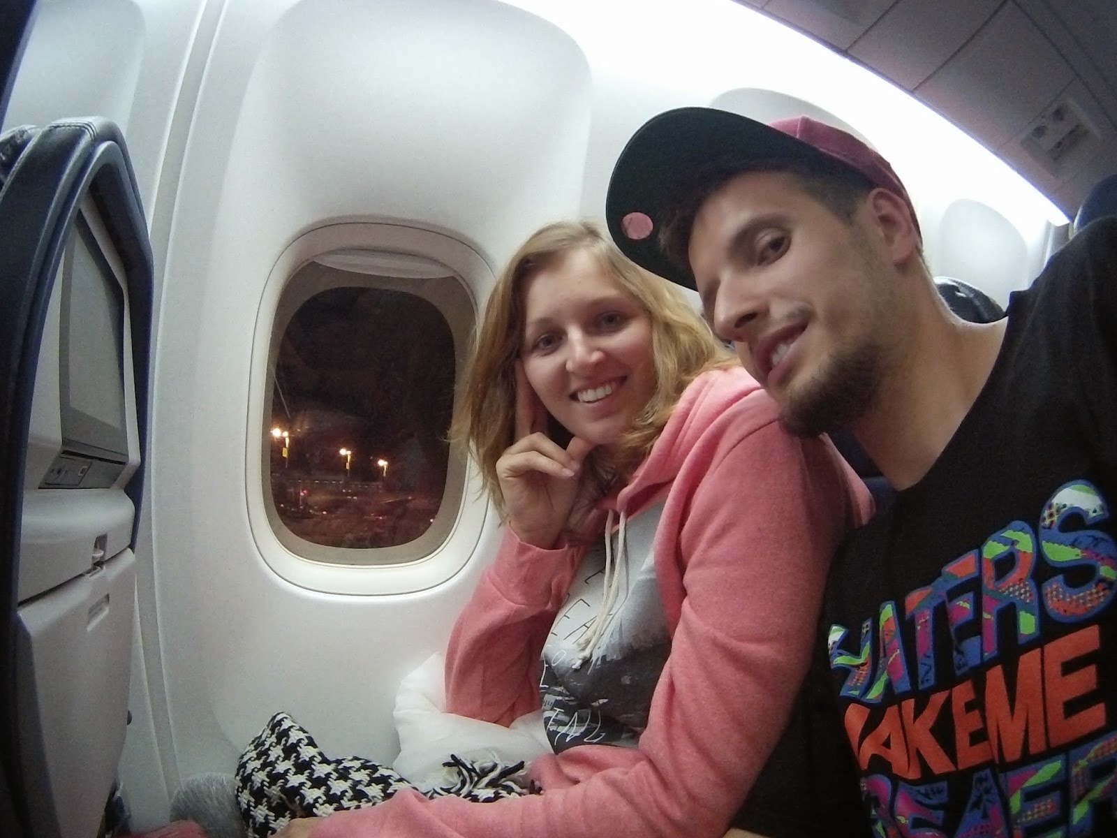 Zpátky do Londýna jsme letěli opět s Deltou. A na služby na palubě si vůbec nemůžu stěžovat. Na začátku jsem dostali vlhčené navoněné ubrousky. K večeři bylo kuře nebo těstoviny, kuře tentokrát trochu ostřejší. Nakonec jsme vůbec nespali. Úplně jsem zapomněla, že mám v tašce Kinedryl. Ach jo! Takže jsme koukali na filmy, nebo jen tak seděli a koukali, chvílemi na pár minutek zavřeli oči, ale kvalitně jsme tedy nespali. Navíc se nám zdálo, že máme méně místa na nohy než při prvním letu. To zřejmě tou únavou. Z cca 6 hodinového letu, který díky časovému posunu představoval celou naší noc, jsme vůbec nespali. Ještě k snídani – jídlo bylo dobré, ale jelikož jsme seděli až úplně vzadu, v první várce s teplými nápoji na nás zapomněli a když jsme si později řekli o čaj, tak jsme dostali něco naprosto nechutného. Přišlo mi to jako zmixovaný čaj s kávou, nebo nevím, jak jinak si tak příšernou chuť vysvětlit.