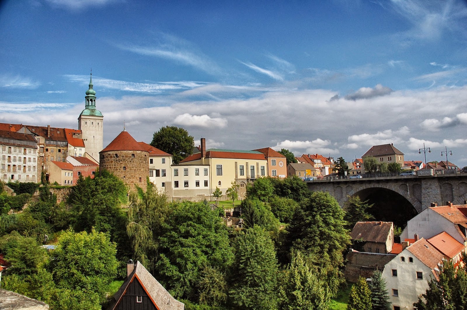 Cestou do centra jsem přešli most Friedensbrücke, ze kterého jsou krásně vidět věže Budyšína. Přímo naproti mostu stojí Stará vodárna, pod kterou protéká říčka Spréva.