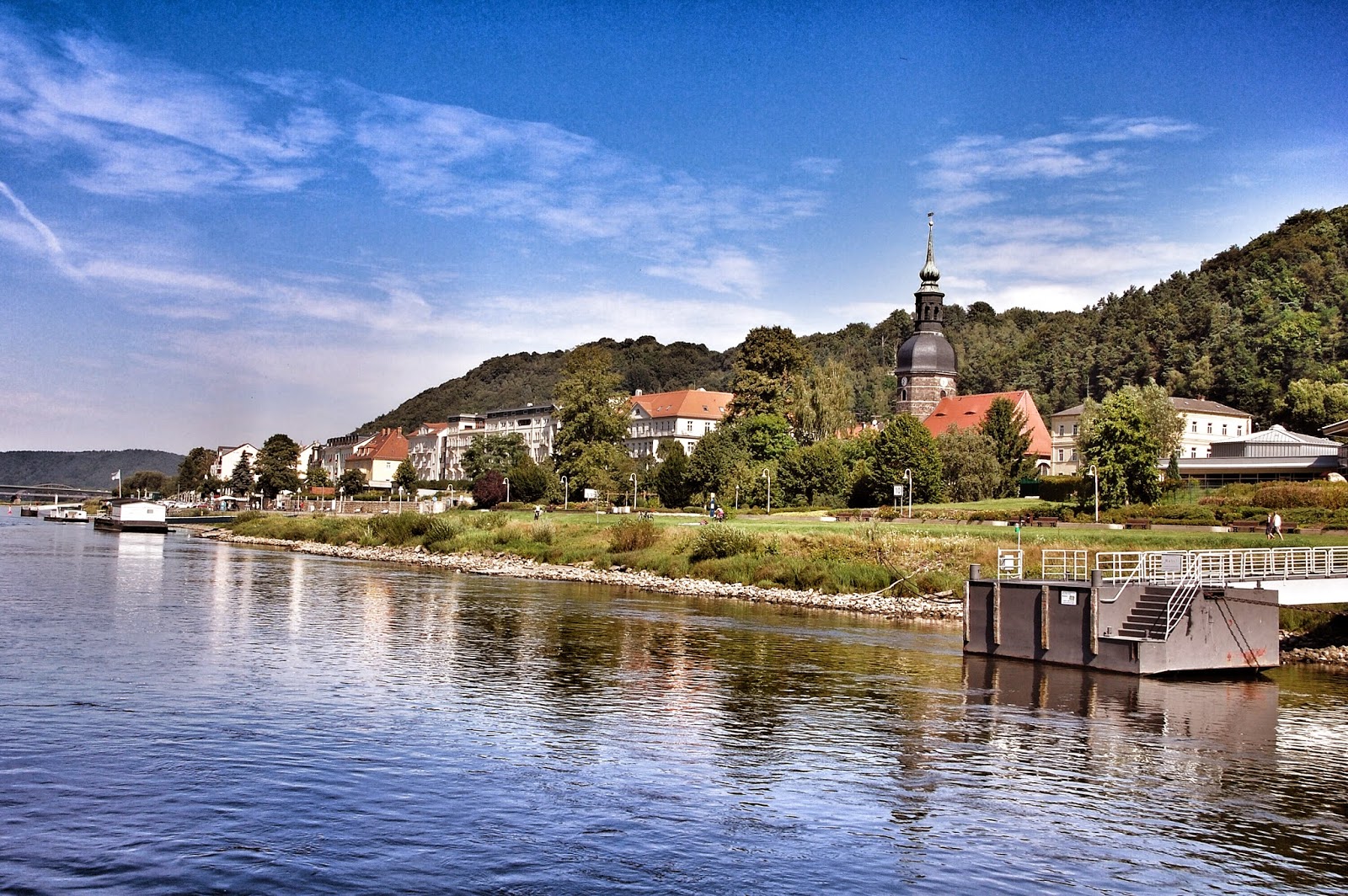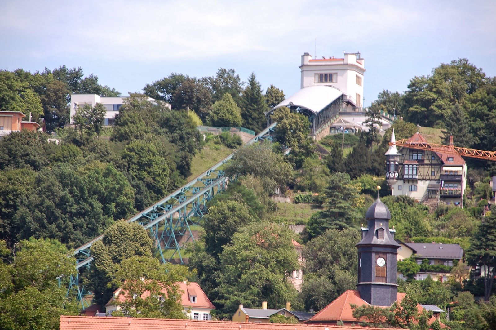 Za ním už začíná drážďanská čtvrť Loschwitz, kde jsou největší atrakcí pozemní a visutá lanovka a most zvaný „Modrý zázrak“.