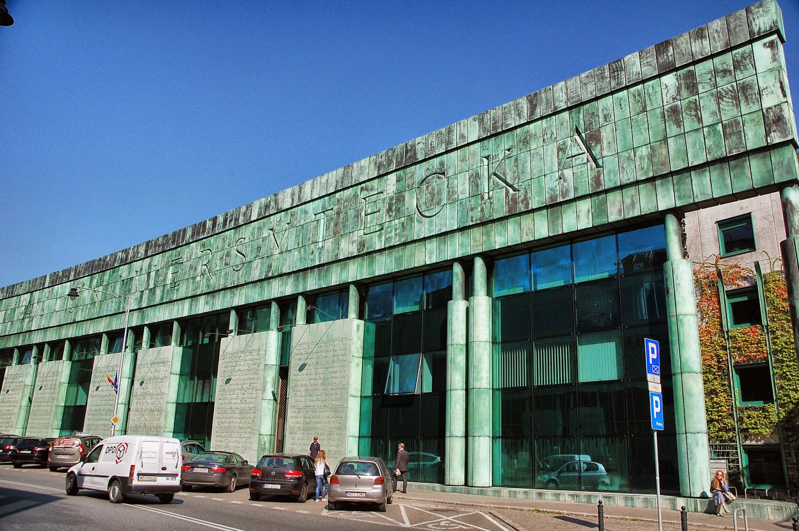 Autobusem jsme přejeli k Univerzitní knihovně, kde je jedna z nejkrásnějších střešních zahrad Evropy. Vstup je zdarma, stejně jako na sousední střešní zahradu v Kopernikově centru. Je odtud hezký výhled na řeku, Národní stadion, kde se v roce 2012 konalo ME ve fotbale a most Swietokrzyski. Studovat ve Varšavě a chodit do této knihovny, no komu by se to nelíbilo.