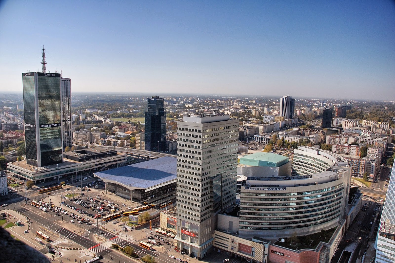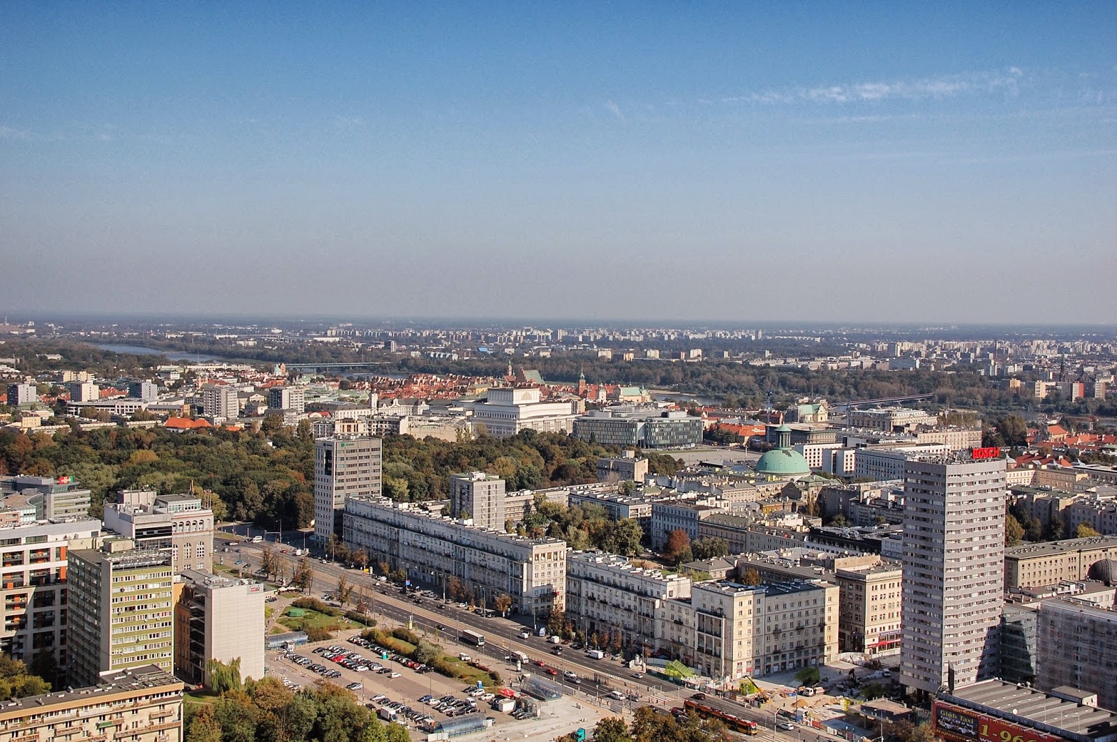 Druhý den jsme dohnali, co jsme první nestihli. Ráno jsme šli do Paláce kultury na vyhlídkovou terasu. Do 30. patra jezdí obsluhovaný výtah a bylo tam málo lidí. A ten výhled. Vstupné stojí 18 zlotých a lze platit pouze v hotovosti. V létě je otevírací doba prodloužená do 20 hodin, to už se nás bohužel netýkalo.